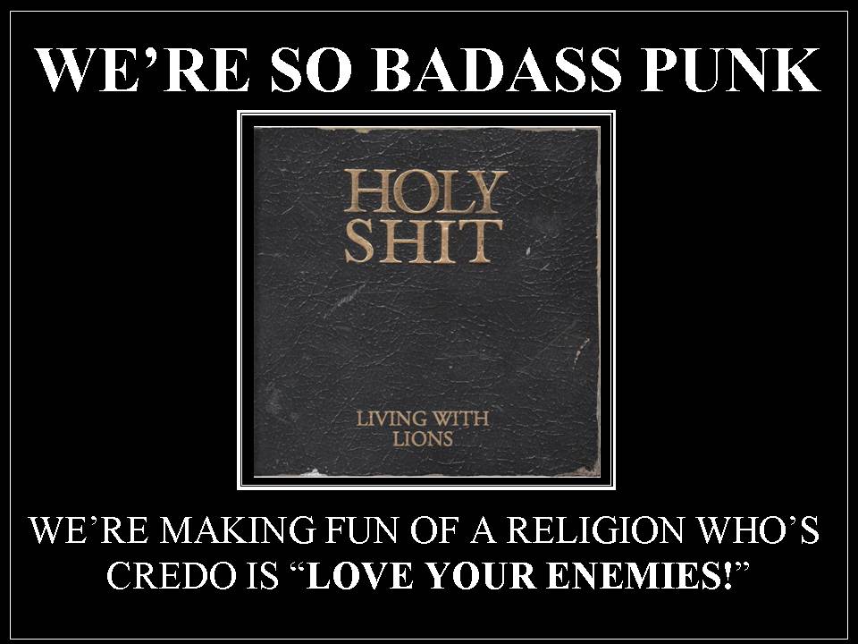 We so badaas punk we're making fun of a religion who'e credo is "Love Your Enenies."